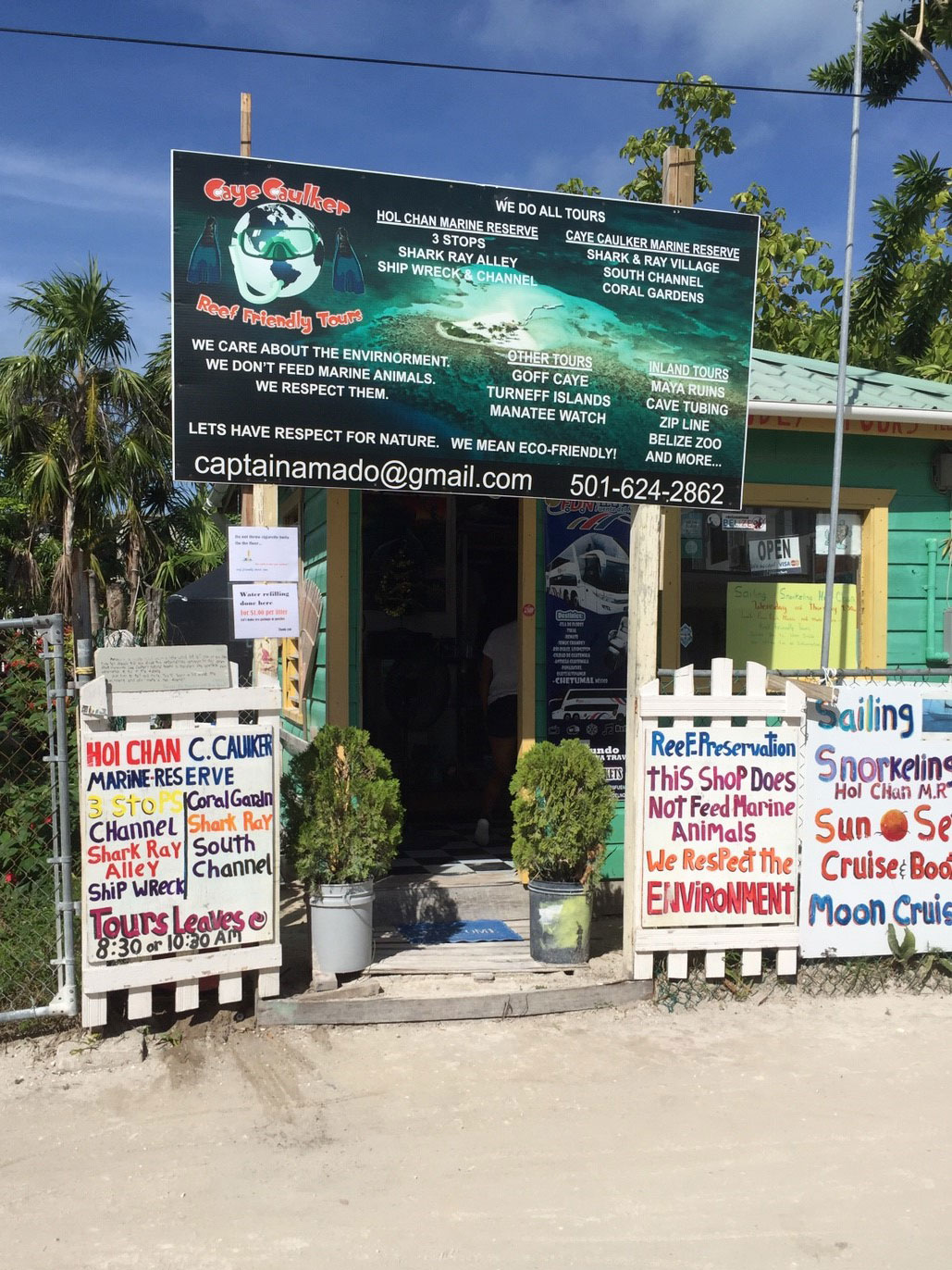 120と130ベリーズドルの差は、昼食の内容の違いで、サンペドロの島のレストランで昼ご飯を食べるか、船の上でバーガーなどを食べるかの差でした。