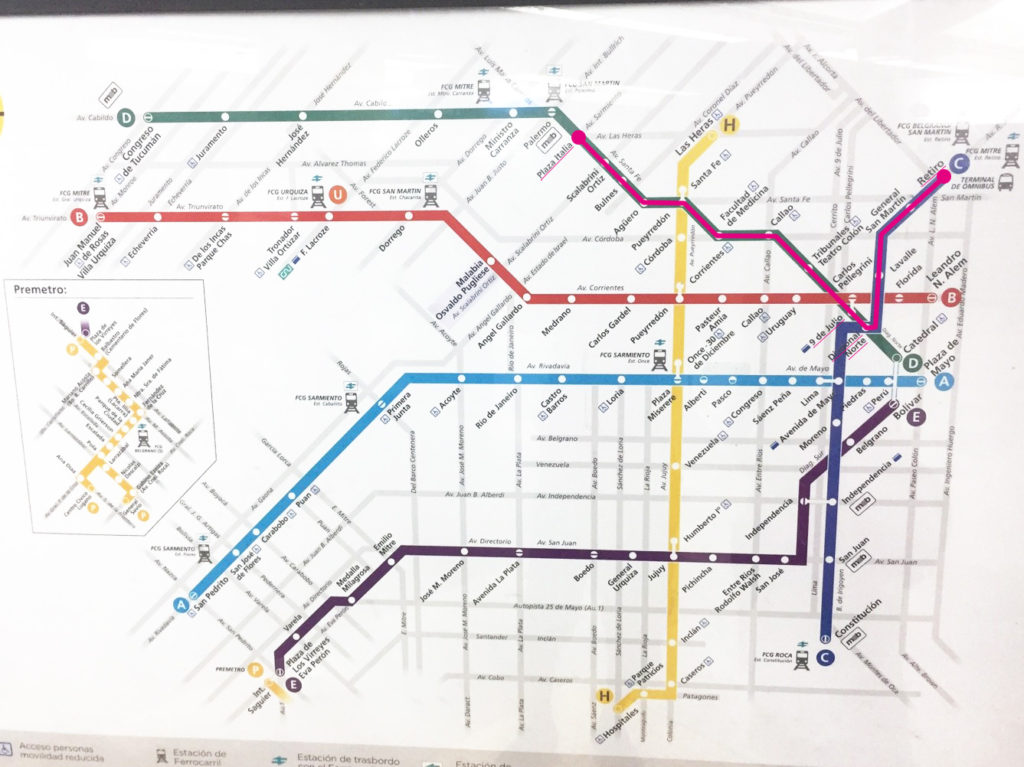 プラザイタリア駅 → 9De Julio 駅 → Diagonal Norte駅 → Retiro駅