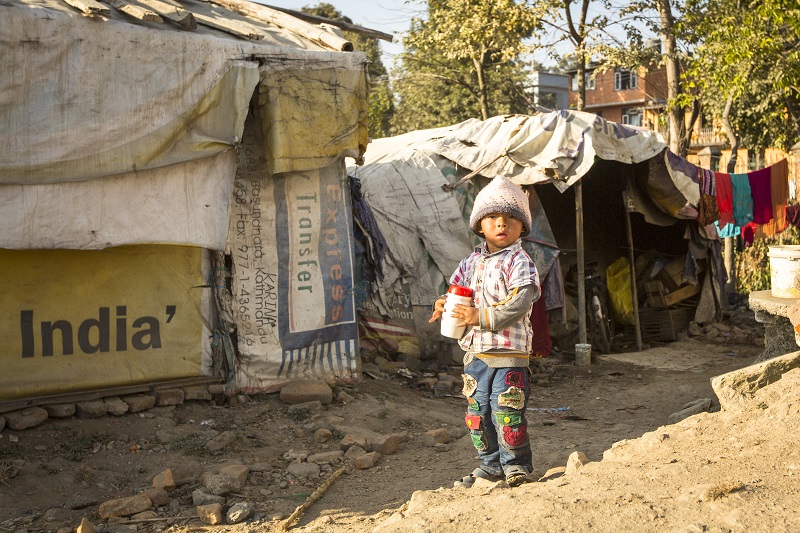 一方スラム街に行くと、道端に木を立て、ビニールシートを張って住んでいる人々もいる。